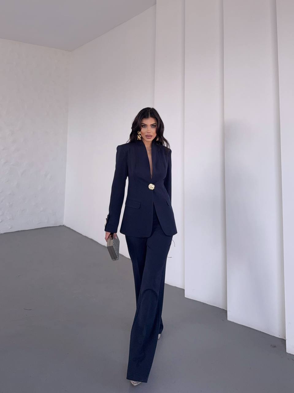 • Şık Tasarım: Minimalist bir yakaya sahip ceket, modern bir kesimle tasarlanmıştır. Ceketin dar kesimi, vücut hatlarını vurgularken, pantolon ise rahat bir fit ile günlük kullanım için idealdir.
