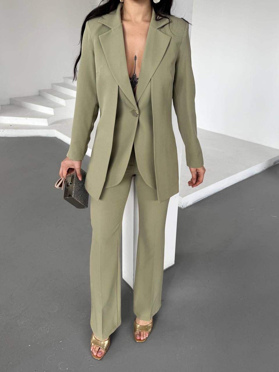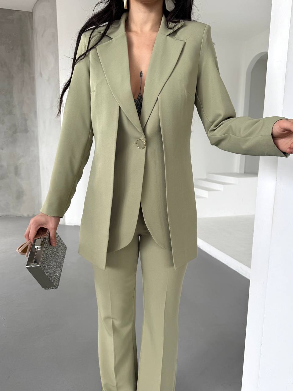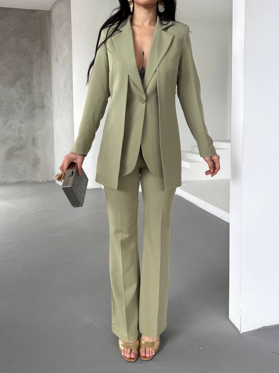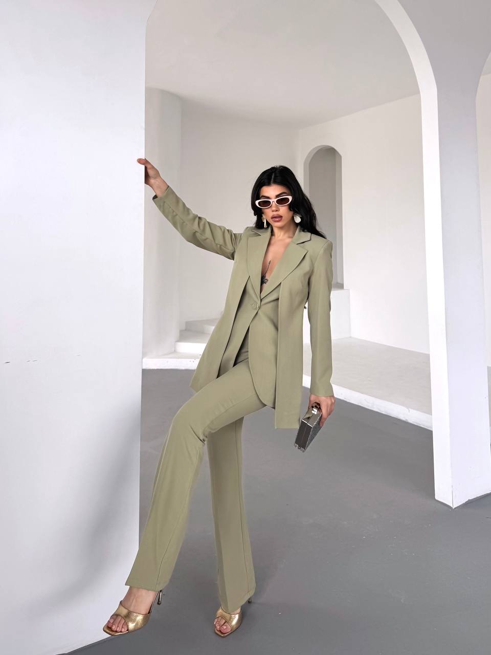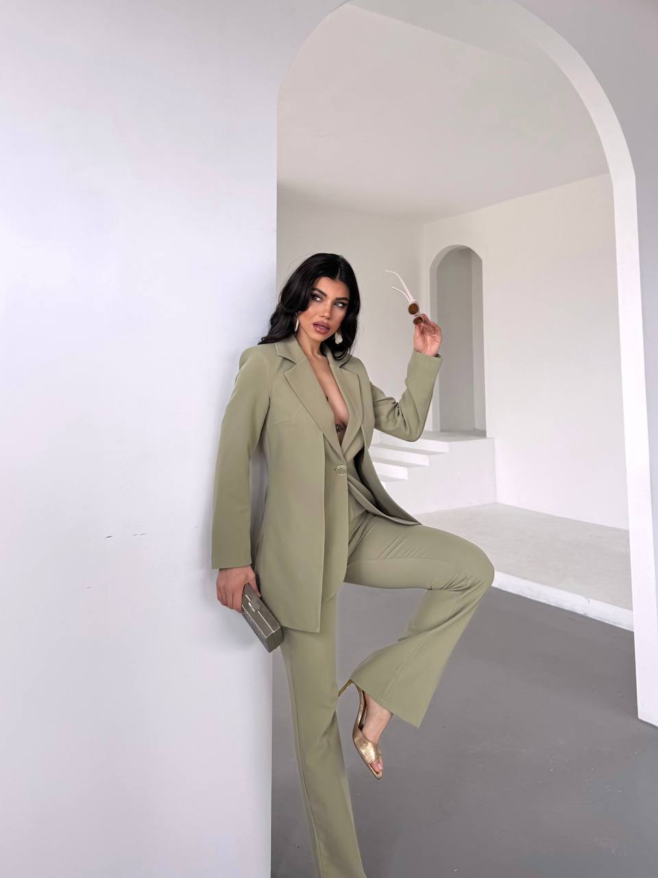 Dökümlü yakası sayesinde hem şık hem de rahat bir görünüm sunan bu takım, günlük yaşamın koşuşturmacasında hareket özgürlüğü sağlar. Soft ve hafif kumaşı, vücudu sararak gün boyu konforlu bir kullanım sunar. Mükemmel bir şekilde oturan kesimi, vücut hatlarınızı nazikçe ortaya çıkarırken, aynı zamanda tüm gün rahat hissetmenize olanak tanır.